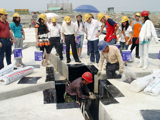 青龍公司自粘卷材預(yù)鋪反粘施工工藝的大量應(yīng)用,徹底顛覆了傳統(tǒng)材料直接施工于墊層的工藝。如番禺祈福新村,中山新中醫(yī)院的地下室防水工程,皆是采用預(yù)鋪反粘。在中醫(yī)院新址地下室施工過(guò)程中,我公司先后組織了開(kāi)發(fā)商、設(shè)計(jì)師、建筑單位等大批人員進(jìn)行現(xiàn)場(chǎng)觀摩學(xué)習(xí),了解這一先進(jìn)工藝,促進(jìn)預(yù)鋪反粘的進(jìn)一步推廣。
