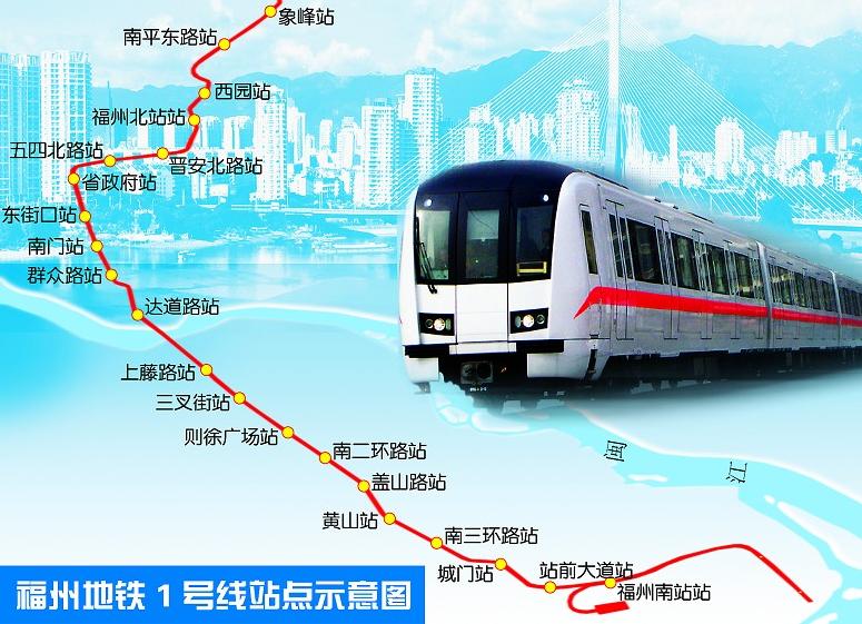福州市城市軌道交通1號線作為線網(wǎng)中的南北向主干線,全長29.2公里,北起新店北部秀峰路,南至東部新城,其中地下24.55公里,高架線4.0公里,敞開段0.65公里。沿線共設(shè)24個站點,車站間距為1.896公里,站間距為0.869公里,平均站間距1.237公里,線路敷設(shè)方式為全地下。車站采用明挖法施工,區(qū)間施工一般為盾構(gòu)法。1號線計劃2009年年底開始建設(shè),2014年底試運營通車。[9]