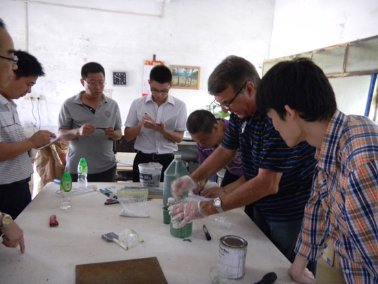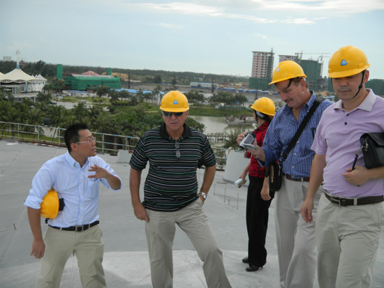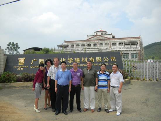 考察團(tuán)一行先后參觀考察了青龍海南國際會(huì)展中心工地、青龍廣西公司、青龍中山公司總部、青龍廣西保溫砂漿生產(chǎn)基地、青龍中山涂料生產(chǎn)基地、青龍中山GRC生產(chǎn)工地、青龍研發(fā)中心(廣西、中山兩處)等。格雷先生對(duì)我公司的設(shè)備和產(chǎn)品給予了肯定,并對(duì)我公司拓展國外的業(yè)務(wù)提出了寶貴的意見,表示青龍完全有實(shí)力開一條生產(chǎn)線生產(chǎn)美國研發(fā)的這種新特材料,并當(dāng)場(chǎng)簽訂了代理協(xié)議,就合作項(xiàng)目交換了意見,目前雙方公司正在積極籌辦中。