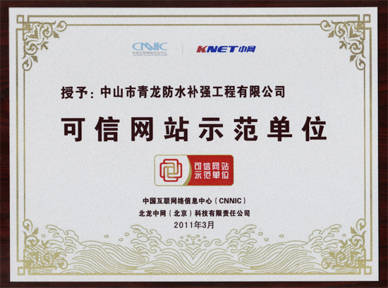 2010年10月29日,中國省級"可信網(wǎng)站示范工程"試點已在廣東啟動,首批"可信網(wǎng)站示范單位"也同期評出。國內(nèi)建筑防水、保溫、加固、GRC裝飾材料集大成者,國內(nèi)較大的EVB保溫砂漿生產(chǎn)商,高新技術(shù)企業(yè)——青龍化建(