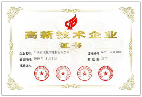近日,廣西青龍國(guó)家高新技術(shù)企業(yè)證書已經(jīng)下達(dá)。如下圖