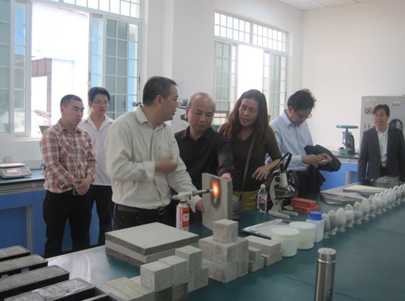 EVB保溫砂漿、防水卷材等幾大生產(chǎn)線及產(chǎn)品檢測實驗室。在參觀過程中他們對各生產(chǎn)線現(xiàn)場管理,特別是對改造一新的卷材生產(chǎn)線進(jìn)行了熱切地詢問,生產(chǎn)部相關(guān)人員均一一進(jìn)行了講解。