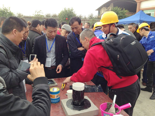 外籍防水專家吉姆先生詳細介紹了水下密封膏技術,并對青龍防水建材作了高度的評價。青龍董事長宋敦清現(xiàn)場翻譯。