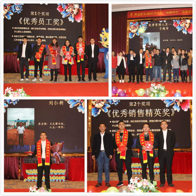 2017年青龍取得出色成就,除了董事長的英明戰(zhàn)略規(guī)劃外,也離不開優(yōu)秀員工的不離不棄和默默堅(jiān)守,他們兢兢業(yè)業(yè)、任勞任怨,他們用自已的行動和力量感召大家,他們?yōu)榍帻埞緲淞⒘四7逗桶駱幼饔?。耕耘必有收獲,他們的杰出的表現(xiàn)得到了肯定,頒發(fā)了優(yōu)秀員工、優(yōu)秀銷售精英、優(yōu)惠管理等獎項(xiàng),通過他們的樹榜,所有員工有了努力的目標(biāo)與方向,通過這種樹榜使青龍公司未來攀上一個(gè)又一個(gè)新的高度。