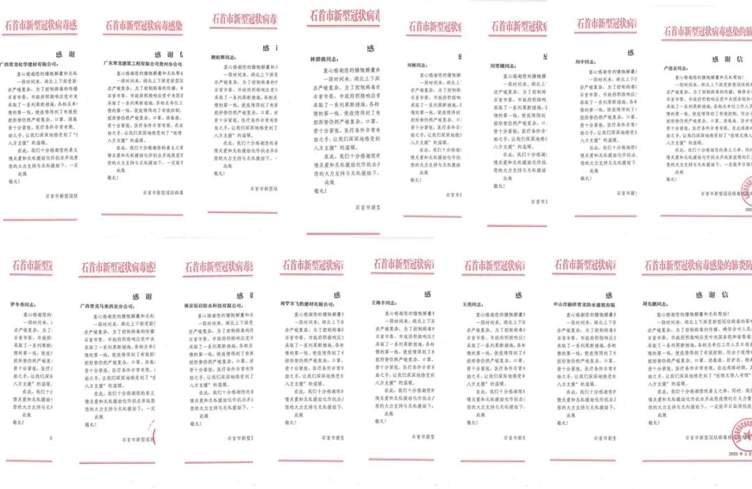 據(jù)了解,這已不是青龍公司因抗疫捐款第一次得到表彰感謝。上月初,同樣是抗疫捐款,青龍公司就收到了16封來自武漢石首的感謝信,感謝之情溢于言表。