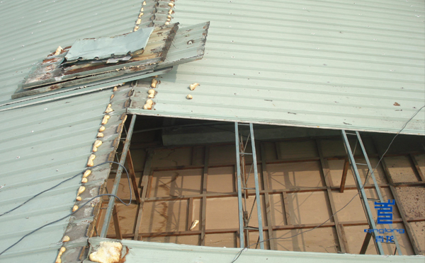 3.加大意外事件發(fā)生的概率。一旦遇上惡烈天氣,彩鋼瓦裂縫很容易被擴(kuò)大,甚至整個屋面被掀起。