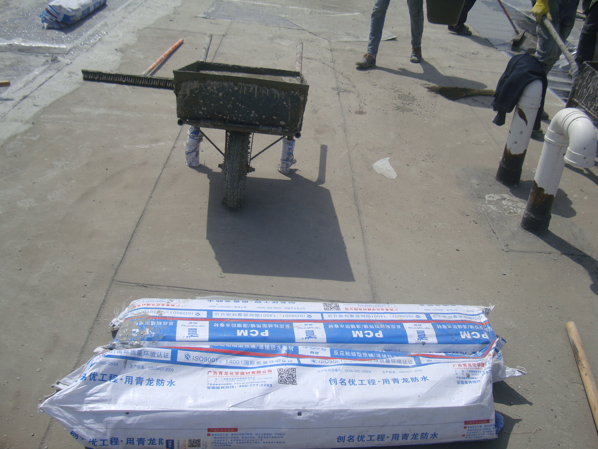 其厚度視基層平整情況而定,一般為2-3mm,過薄達(dá)不到最優(yōu)的粘結(jié)效果,過厚則水泥漿堆積而開裂,刮涂時(shí)應(yīng)注意壓實(shí),抹平。刮涂水泥漿的寬度要比卷材的寬度長,刮涂過程中要注意保證平整度。