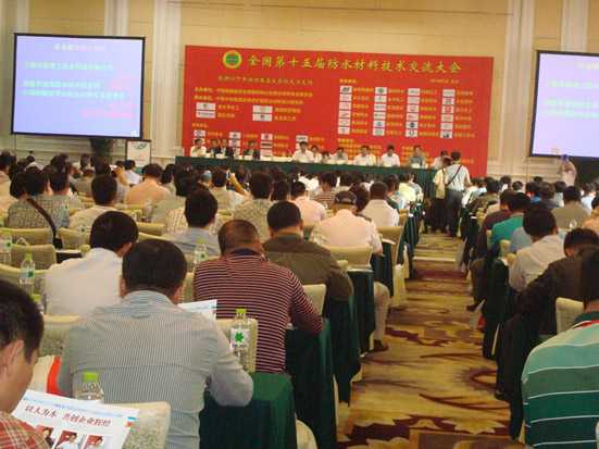 由中國硅酸鹽學會房建材料分會防水材料專業(yè)委員會主辦的第十五屆全國防水材料技術交流大會于2013年5月18-20日在長沙隆重召開,來自全國各地有關建筑防水堵漏材料及其原材料生產(chǎn)、工程施工、防水社團組織等單位的500多名代表出席了大會。