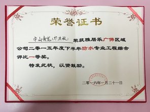 青龍防水材料質(zhì)量可靠,鄺洪根團隊榮獲雅居樂防水工程綜合評比一等獎